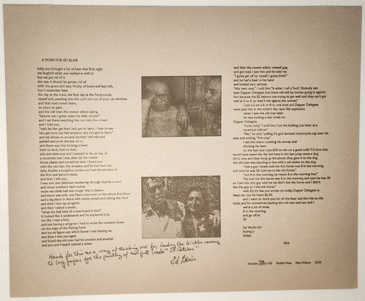 A Poem for Ed Blair Broadside (#38/100): Perdido Press 2020