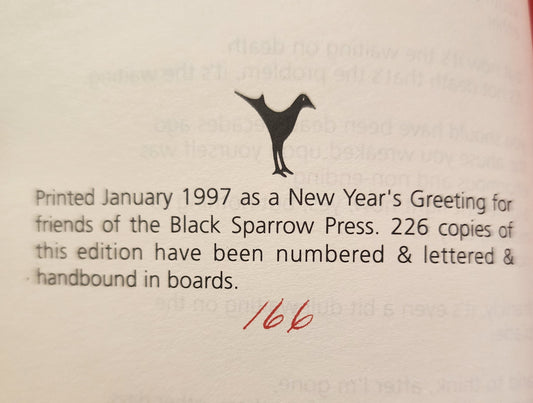 Hardcover 1997 Black Sparrow New Years Greeting (#166/226): Five Charles Bukowski Poems