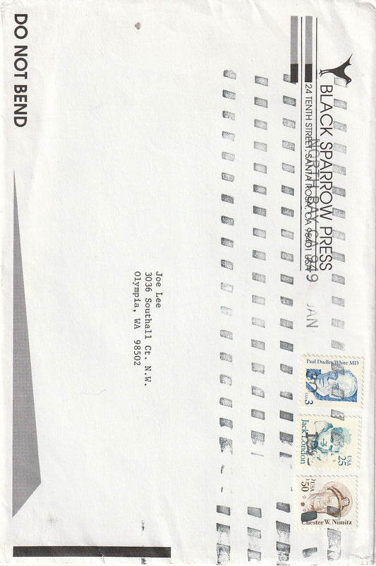 1994 Black Sparrow New Years Greeting with Envelope: Five Charles Bukowski Poems