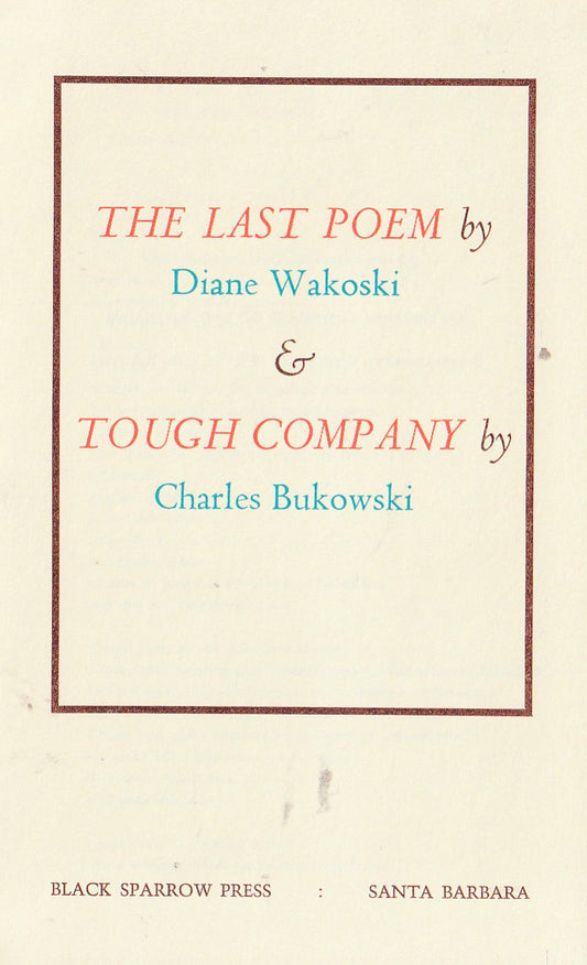 THE LAST POEM and TOUGH COMPANY by Charles Bukowski and Diane Wakoski