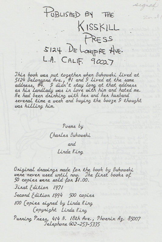 First, Limited Edition (#162/200) Drawings Plus Two Uncollected and Seven First Appearance Charles Bukowski Poems