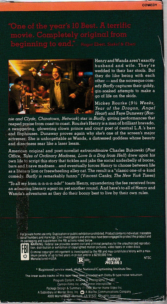 Barfly VHS Take -- Charles Bukowski