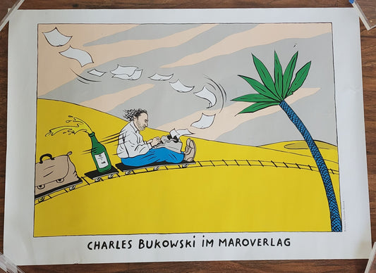 Rare Print (25” x 17”) by MaroVerlag Featuring Drawing of Charles Bukowski