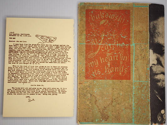 Rare Copy of It Catches My Heart in Its Hands: Signed Twice by Bukowski with Two Quotations. One on Rare White Paper Stock. Includes Custom Clamshell Box and Ephemera