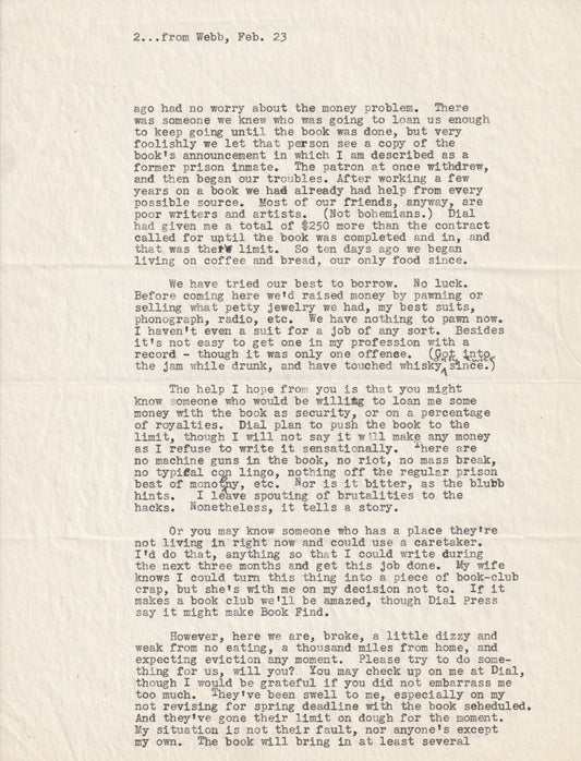 Signed Jon Webb Three-Page Letter to Walter Winchell with 1937 Dial Book Announcement