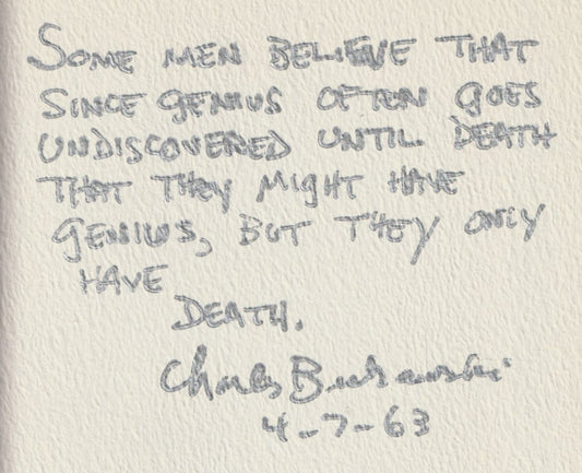It Catches My Heart in Its Hands: Signed by Bukowski with Quotation On Rare White Paper Stock
