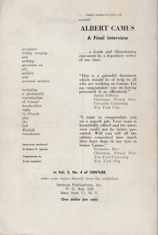 Venture V4 No1 -- Early (1961) Uncollected Charles Bukowski Poem and rare Willard Manus