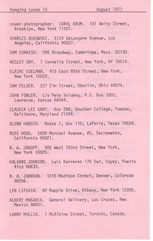 Hanging Loose -- Two First Appearance Charles Bukowski Poems (1971)
