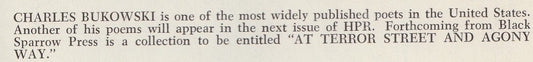 Hiram Poetry Review No. 1 -- Two First Appearance Charles Bukowski Poems (1966)