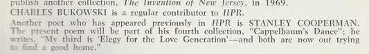 Hiram Poetry Review No. 4 -- One Uncollected Charles Bukowski Poem (1968)