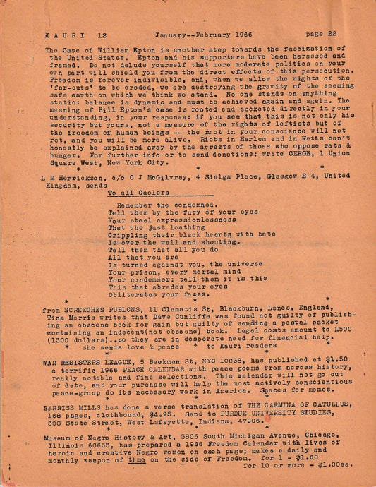 Kauri No. 13 -- Two Uncollected Charles Bukowski Poems (1966)