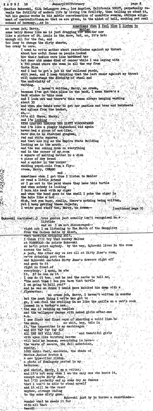 Kauri No. 19 -- One Uncollected Prose Piece by Charles Bukowski (1967)