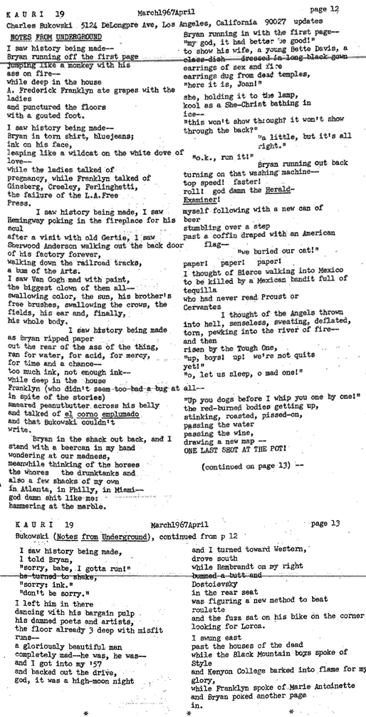 Kauri No. 15 -- Letter Excerpt and One Early Charles Bukowski Bit Of Prose (1966)