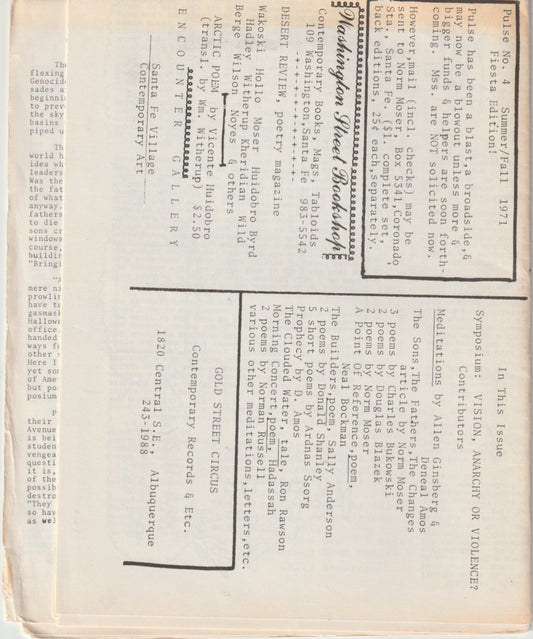 Pulse 4 -- Three Uncollected Charles Bukowski Poems (1971)