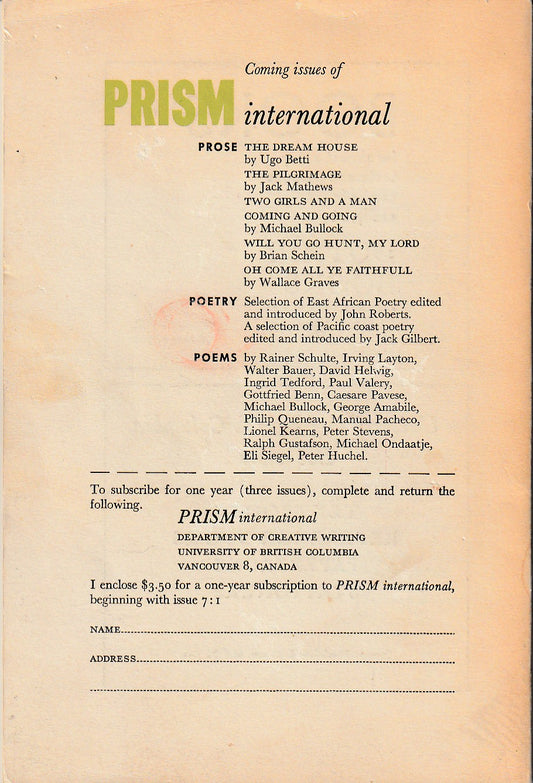 Prism International Vol. 6, No. 3 -- First Appearance of The Seminar (1967)