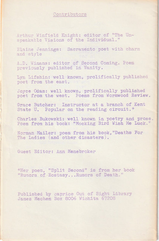 Collection: Charles Bukowski appearances in Magazines 1966-1975