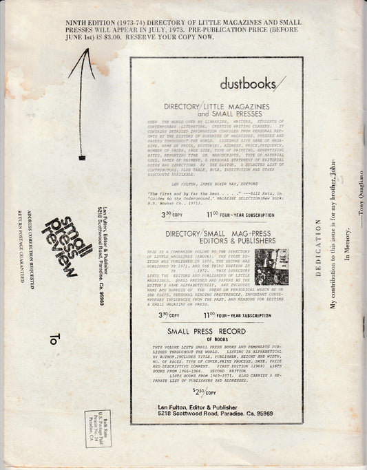 Small Press Review Vol. 4, No. -- Special Bukowski issue with Articles, Interviews, and Photos (1973)