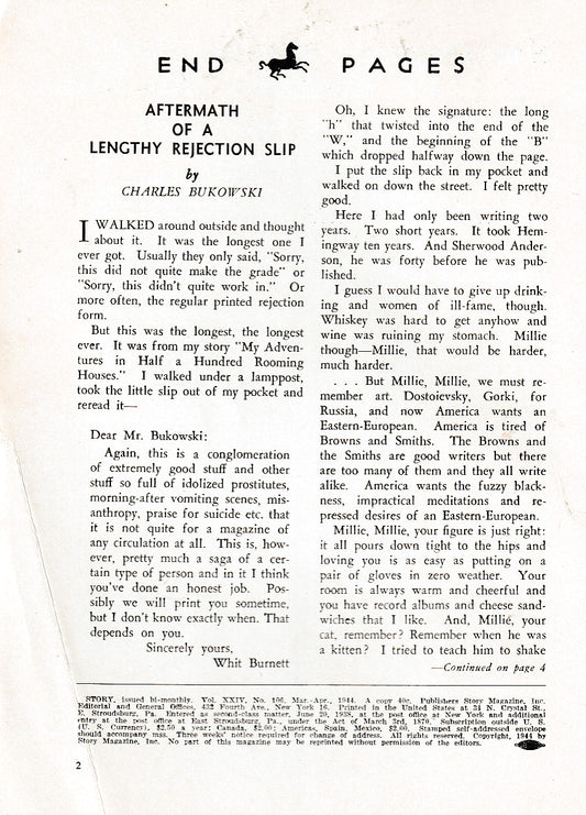 Story Magazine March-April 1944: The First Literary Appearance by Charles Bukowski