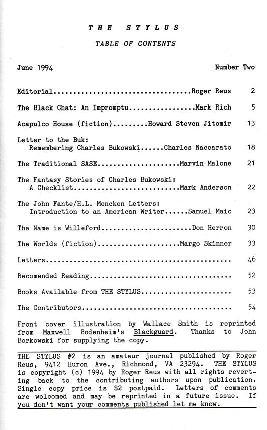 Stylus 2 – Poem about Bukowski by Marvin Malone and More