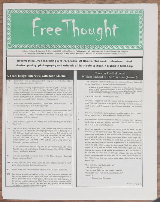Free Thought. Vol. II, Issue I: Presentation Copy with Photo Sheet Signed by Michael Montfort