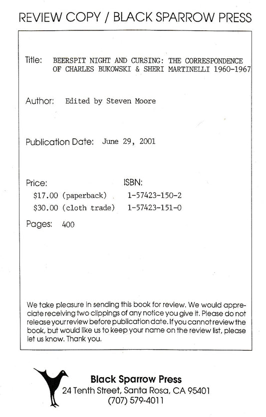 Deluxe Edition with Print: Beerspit Night and Cursing: The Correspondence of Charles Bukowski and Sheri Martinelli, 1960-1967