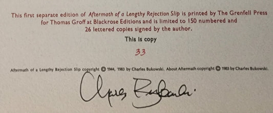 Signed by Charles Bukowski (#34/150): Aftermath of a Lengthy Rejection Slip (1983)