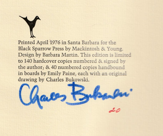Limited, Signed by Charles Bukowski, #24/27: Drawings, Poems, Letters and Essays