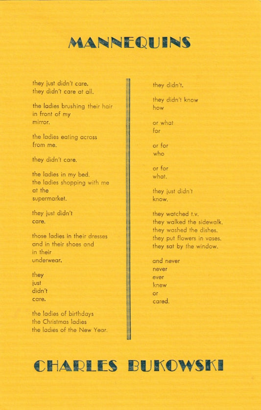 Over the course of his career, Charles Bukowski submitted his work to hundreds of different magazines and newspapers. While his most prolific submissions took place during the 1960s and 1970s, Bukowski kept submitting new poems to magazines long after he became well known – in fact, right up to his death.