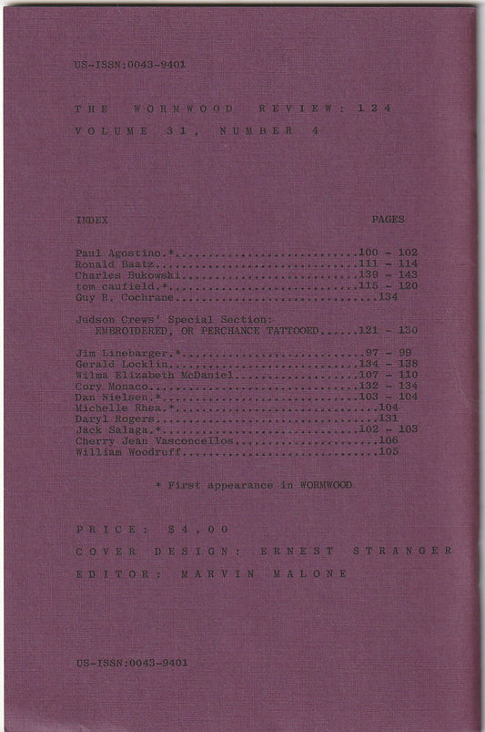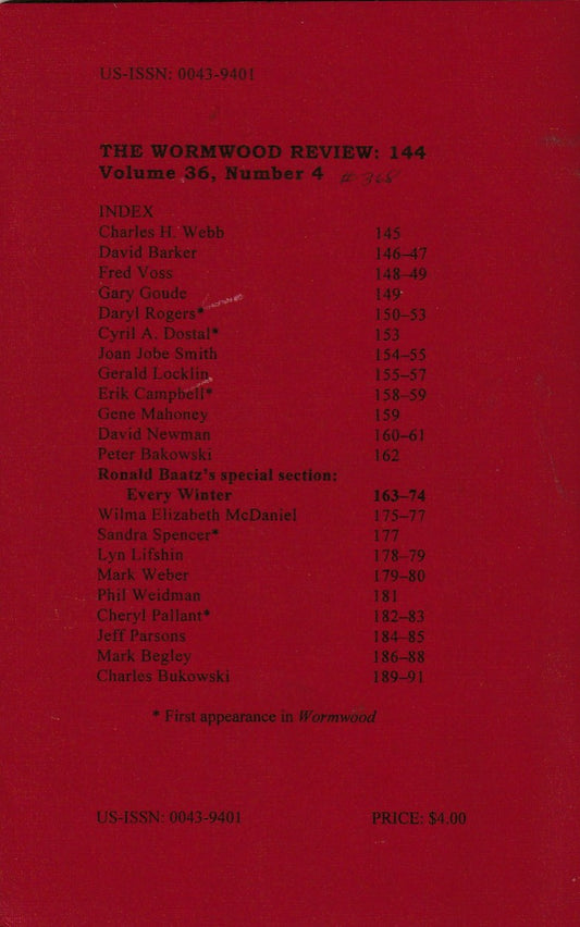Wormwood Review 18 (#422/600) – One Charles Bukowski Poem and Book Announcement