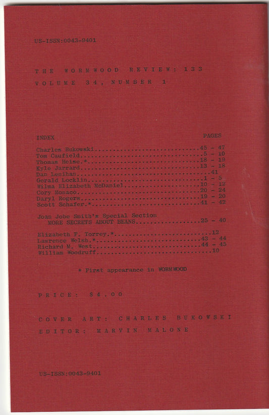 Wormwood Review 133 #365/700 — Drawing and 3 Poems, One Uncollected by Charles Bukowski