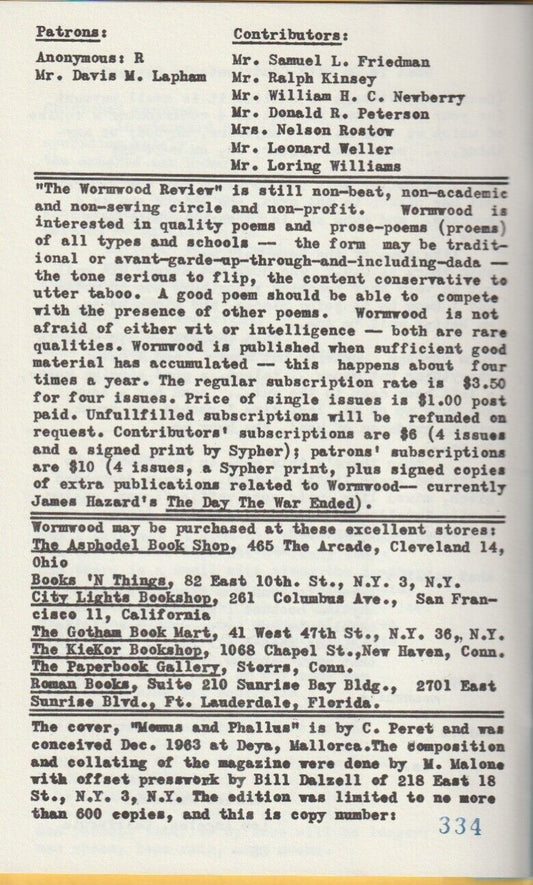 Wormwood Review 14 #334/600 – Two Charles Bukowski Poems (1964)