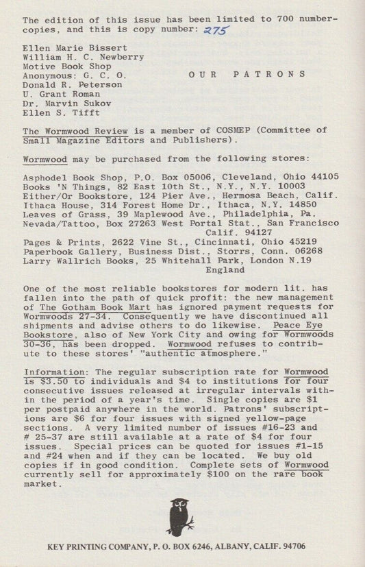 Wormwood Review 44 #102/700 – Three Uncollected Charles Bukowski poems (1971)