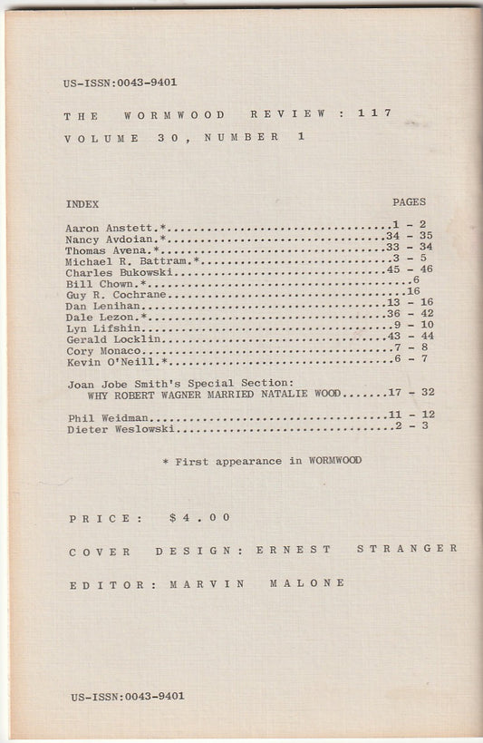 Wormwood Review 117 #188/700 — 3 Poems by Charles Bukowski