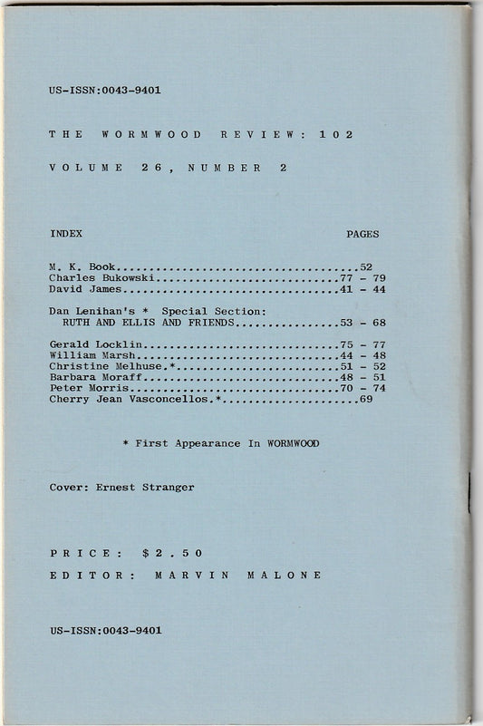 Wormwood Review 101 #196/700—2 Poems, One Uncollected by Charles Bukowski
