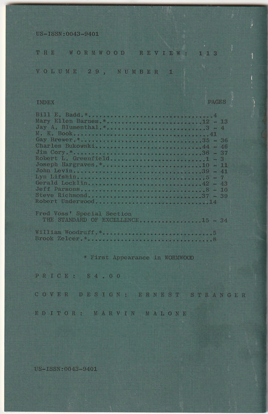 Wormwood Review 113 #122/700 — 3 Poems by Charles Bukowski