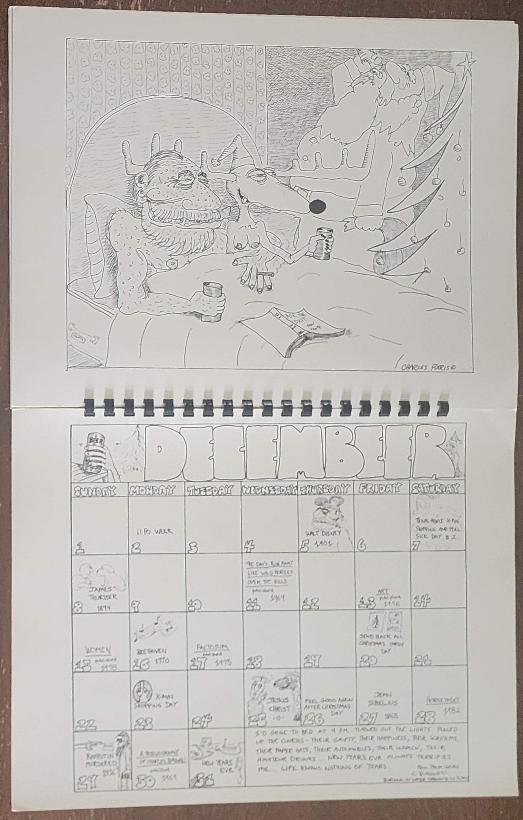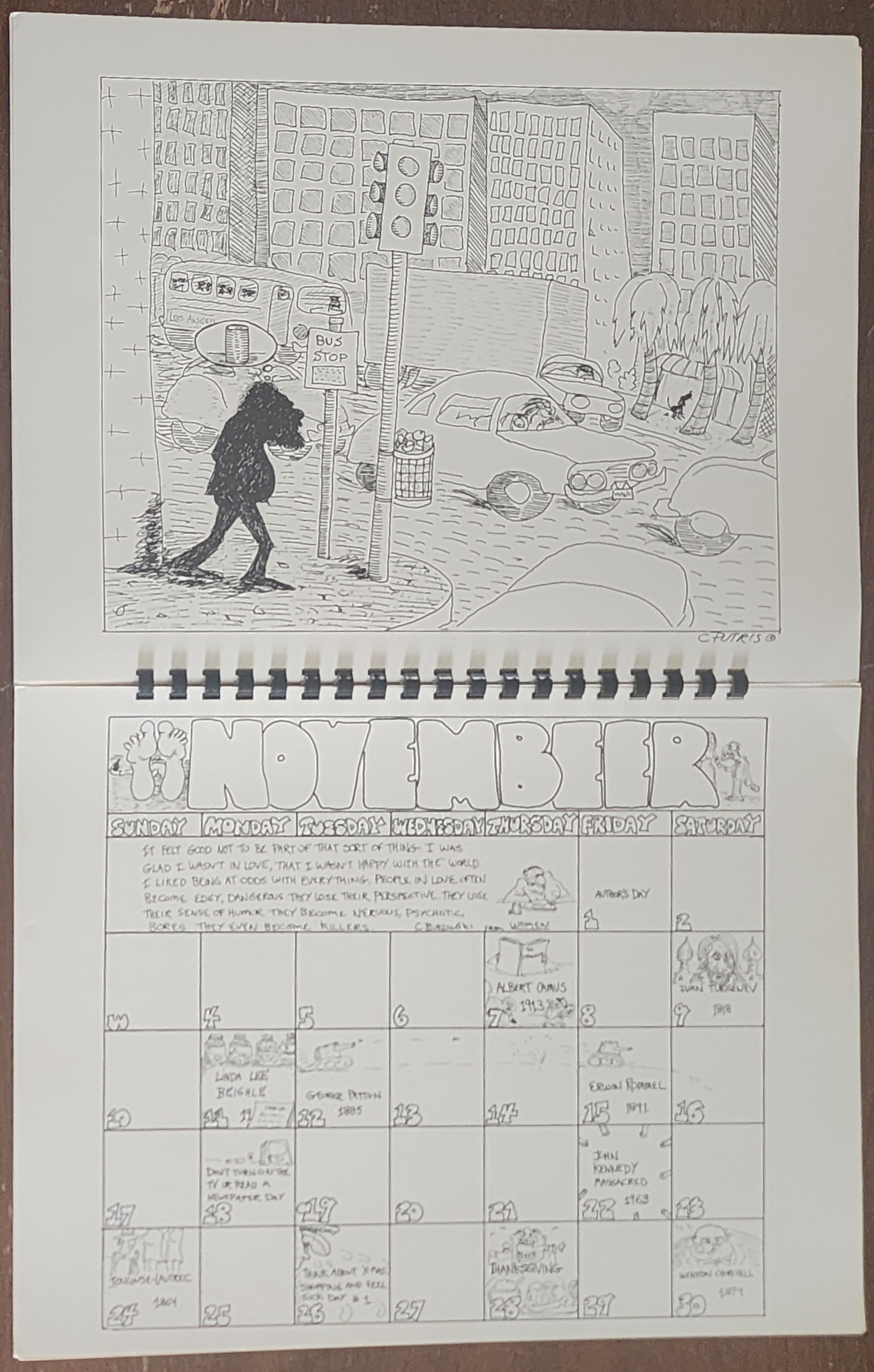 Interestingly, no calendar was published in 1986 or any other year. Perhaps a German man came up to Martin at the Frankfurt Book Fair and told him in broken English that the artist spelled “Calender” on the cover instead of “Calendar”.