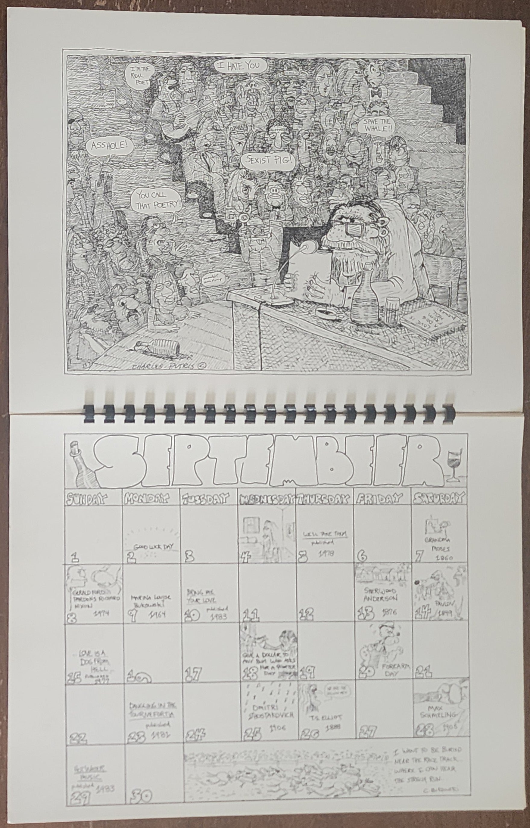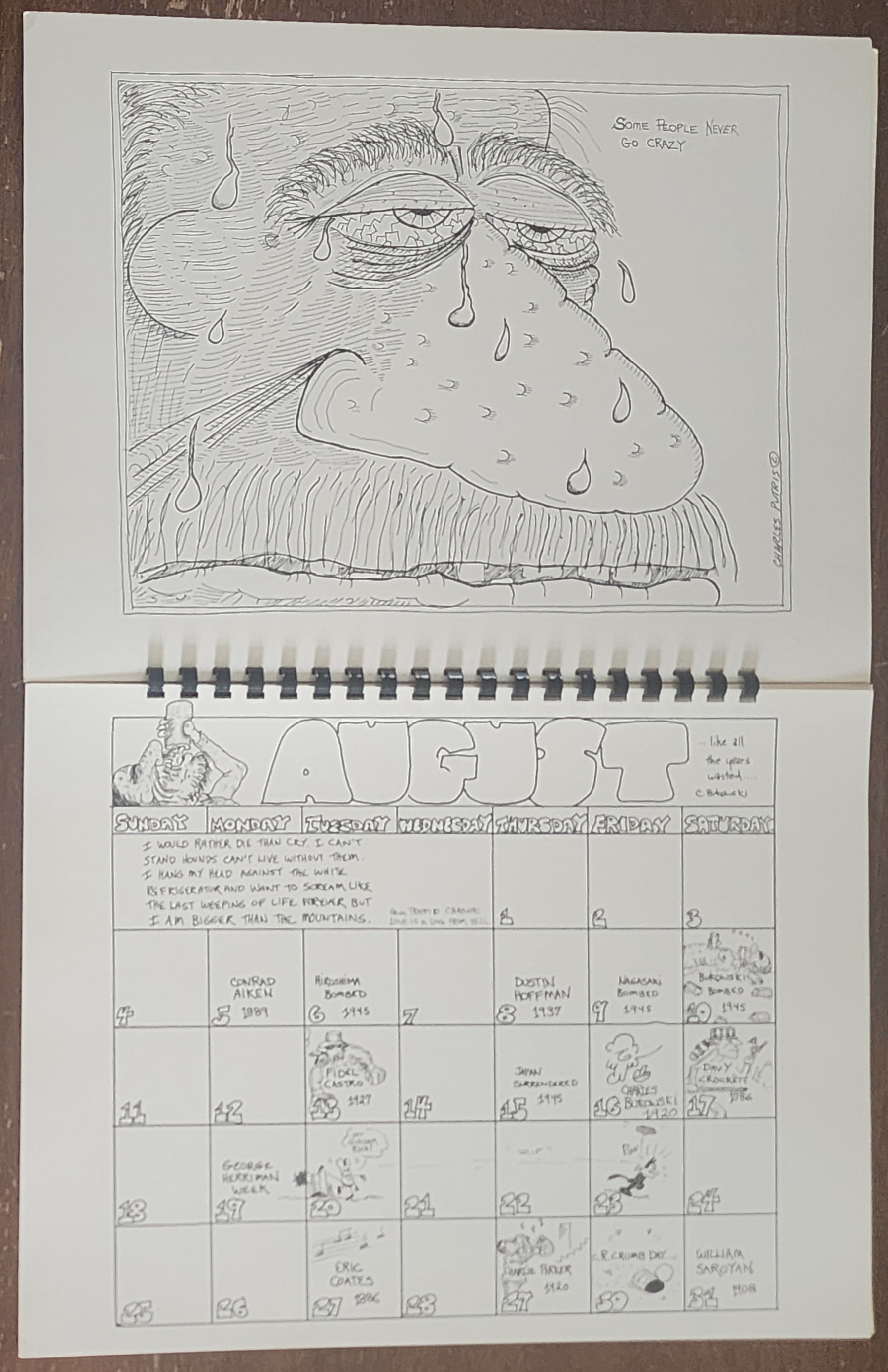 Published in 1985, this calendar is a bit of a rarity in Black Sparrow Press’ bibliography of Charles Bukowski works. But this particular copy is even more uncommon because it was #15 of 25 copies that were originally produced according to publisher John Martin.