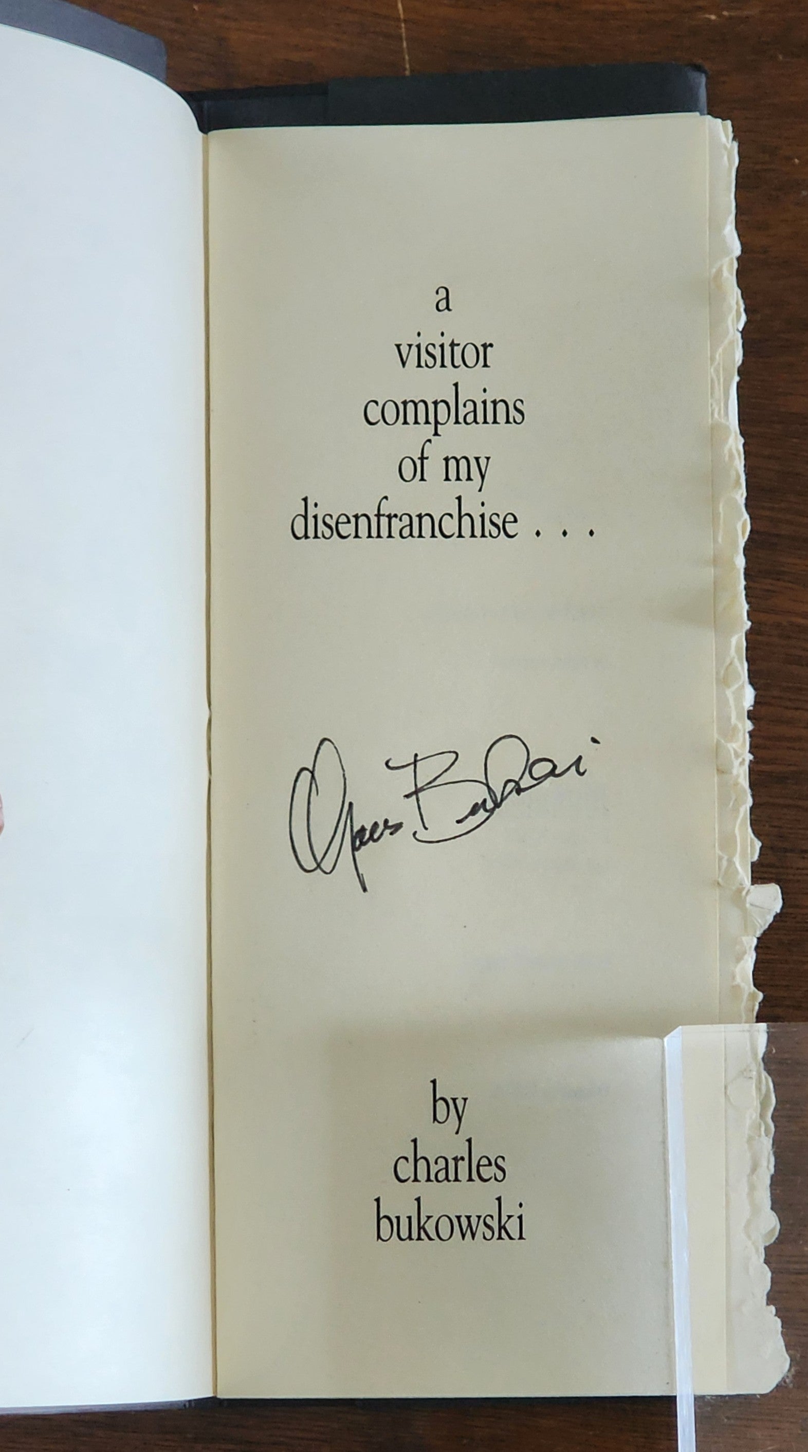 A Visitor Complains of My Disenfranchise: 1/15 Copies Signed by Rare Charles Bukowski