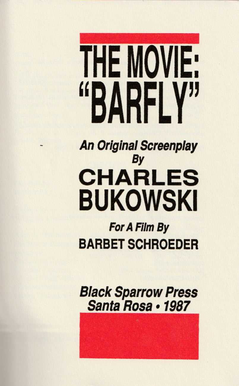 Published in 1987 to coincide with the film, this is a softcover copy of the screenplay got Barfly, by Charles Bukowski. There are definitely difference between the Paget Press (1984) and Barfly versions, Bukowski continue to refine the screenplay during the three years between the two books.
