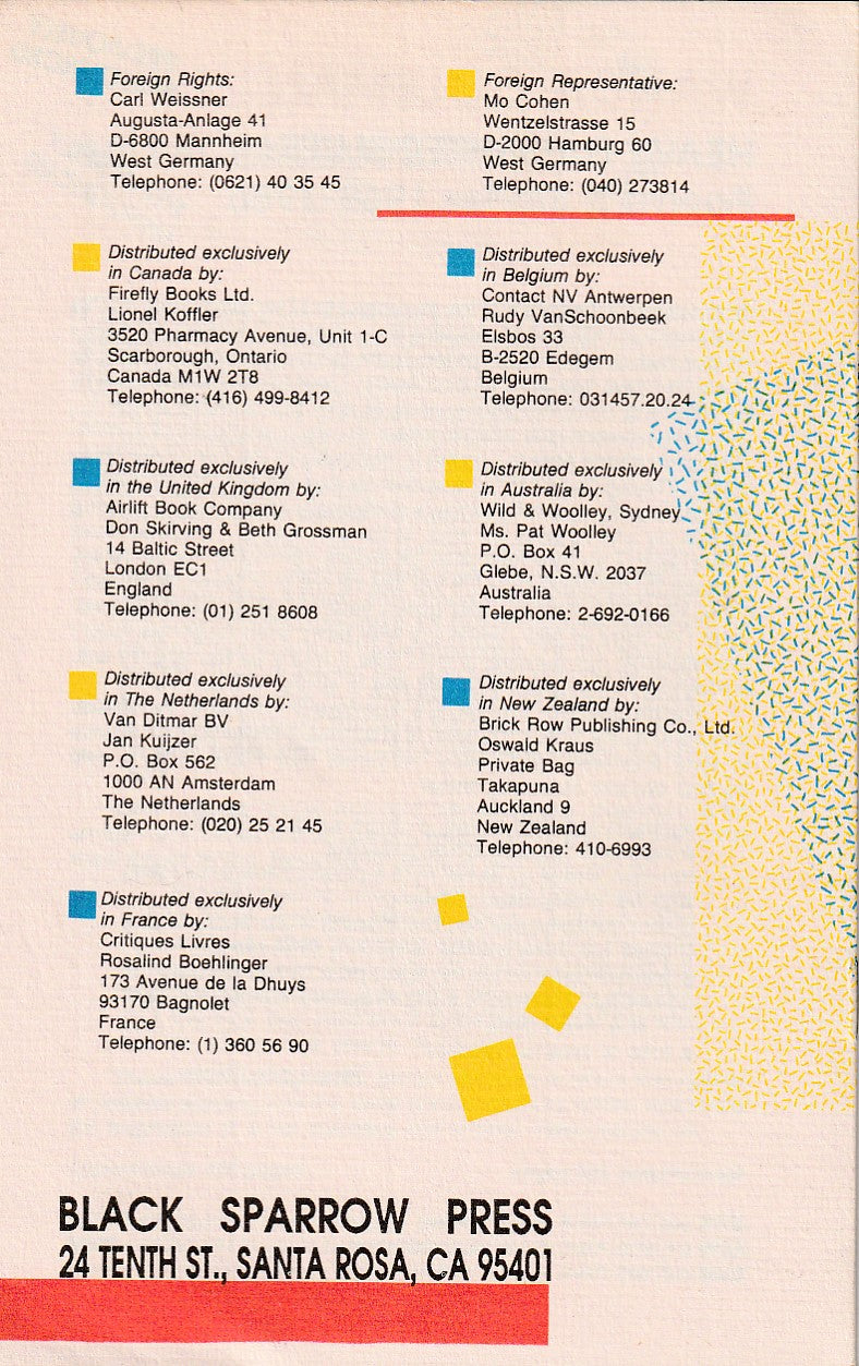This copy came from estate of Red Stodolsky, owner Baroque Book Store and a close friend of Charles Bukowski. Bukowski would go by Red s shop regularly and the two would go to lunch at Musso & Frank Grill. But first Bukowski would sit and sign a pile of books for Red to sell. The great thing about these copies is that Bukowski actually held the books as he signed them. With the limited-edition Black Sparrow Books, Bukowski would sign individual pages that were later inserted into the books.