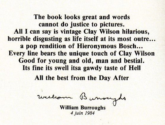 Published in 1984 by Futuropolis in Paris, this beautiful hardcover book features drawings by Underground Comix legend S. Clay Wilson and award-winning European cartoonist Willem (Charlie Hebdo).