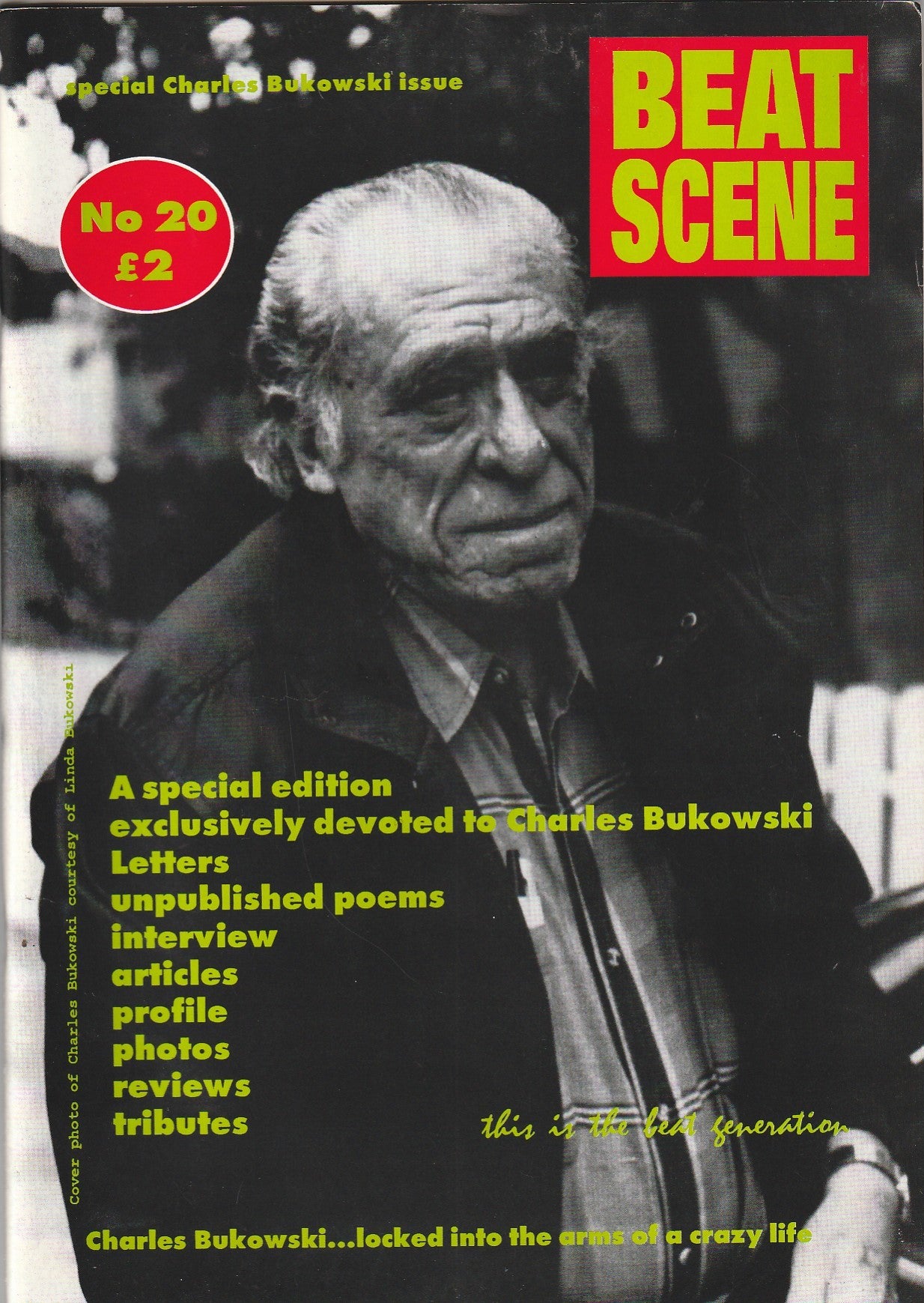 Published in 1994 following Bukowski’s death, Beat Scene #20 features letters, an uncollected poem, interviews, articles, photos and more.