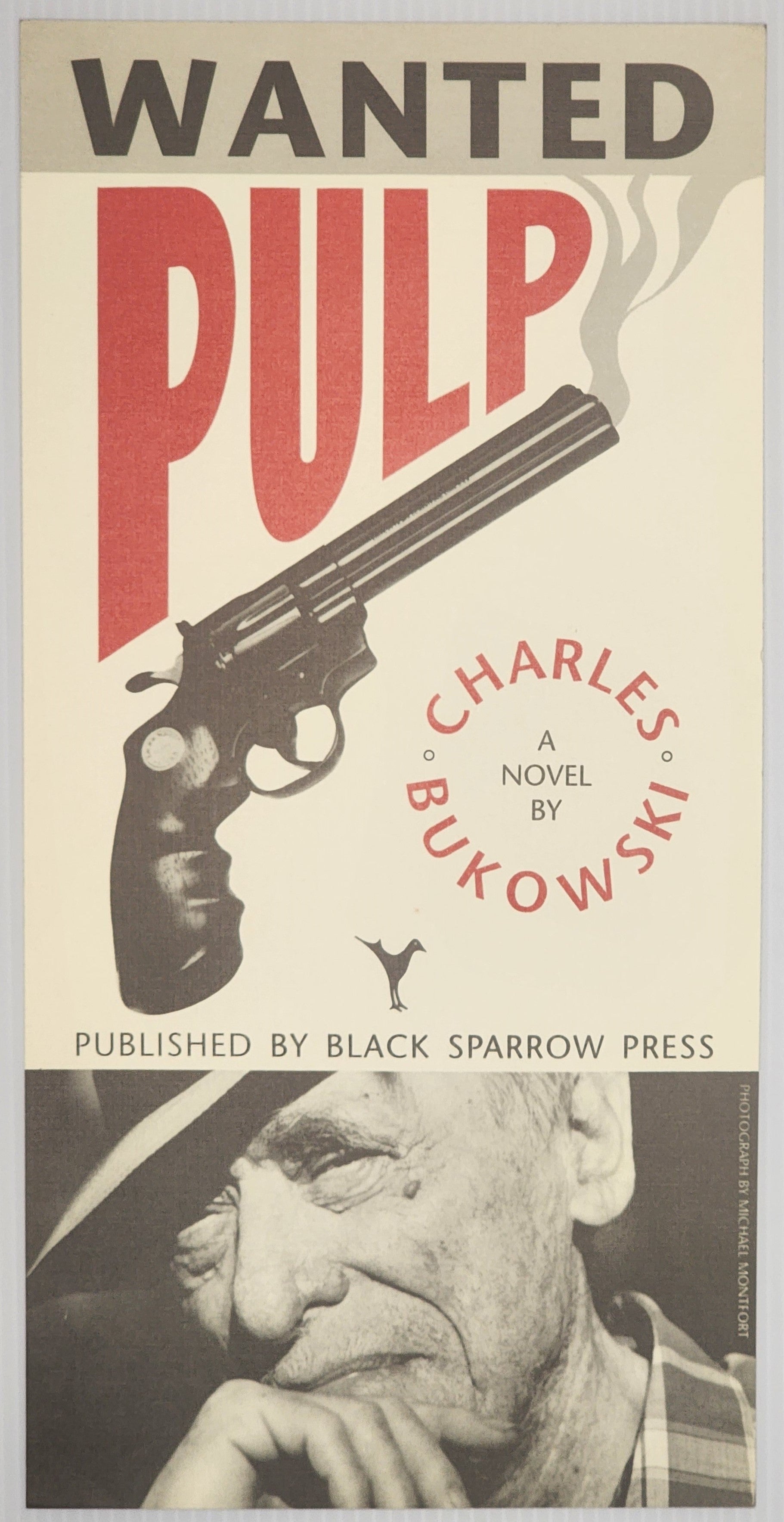 Published by Black Sparrow Press in 1994, this was the announcement for Pulp. Charles Bukowski’s final novel In addition to Barbara’s Martin’s classic design, it features a photograph by Michael Montfort.