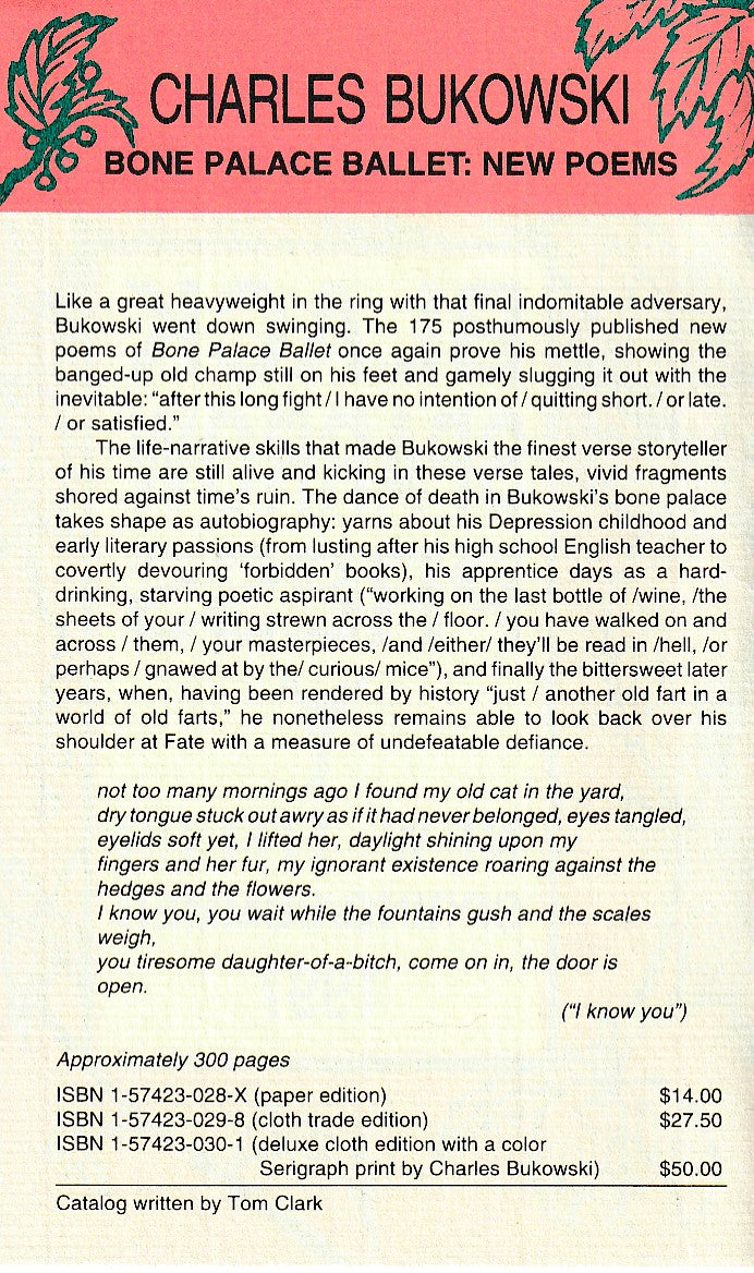 This is a limited-edition copy of Bone Palace Ballet by Charles Bukowski