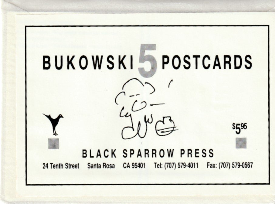 Black Sparrow Press issued these five postcards back in the mid-1980s and they’ve become a favorite item for Bukowski collectors ever since.
