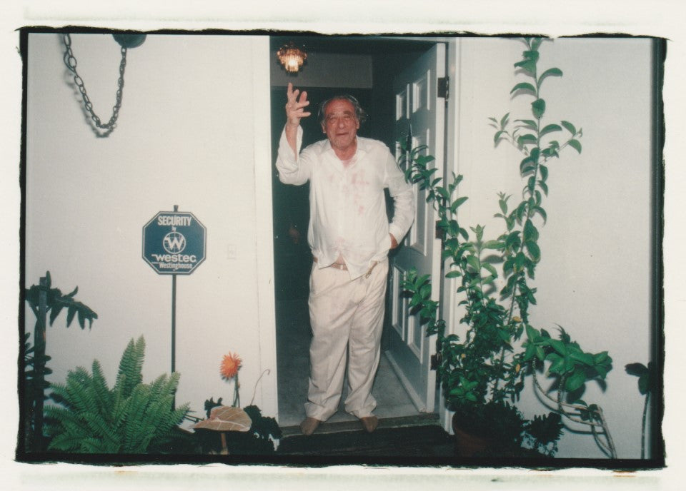 It was taken by Michael Montfort in front of Bukowski’s San Pedro, California, home.