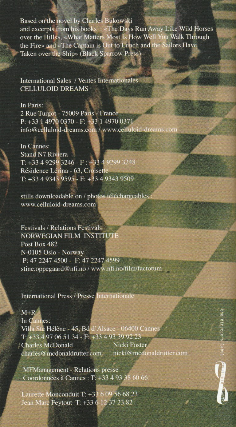 This is a program used for the premier of the film Factotum at Cannes.