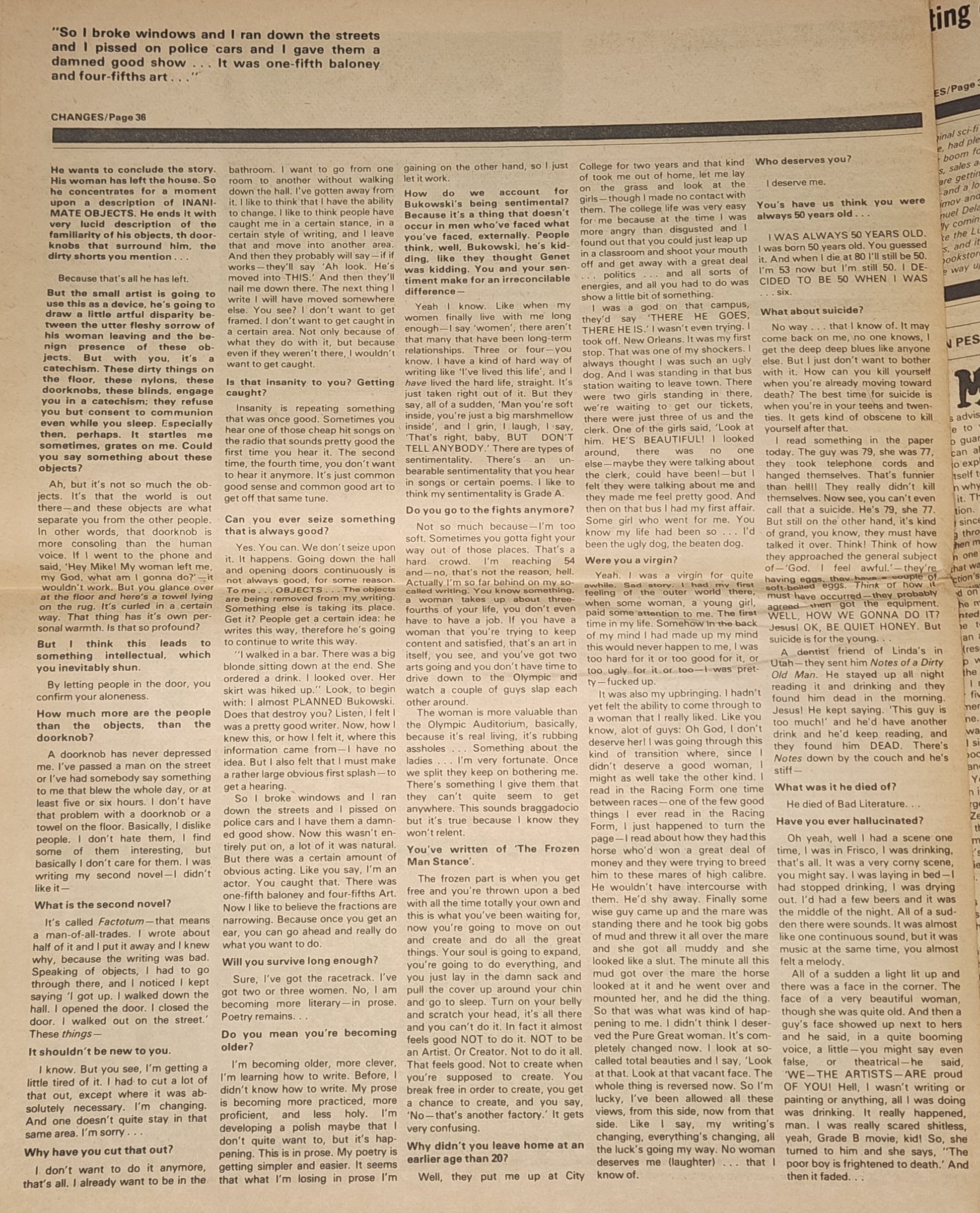 Changes April 1975 -- Charles Bukowski Interview