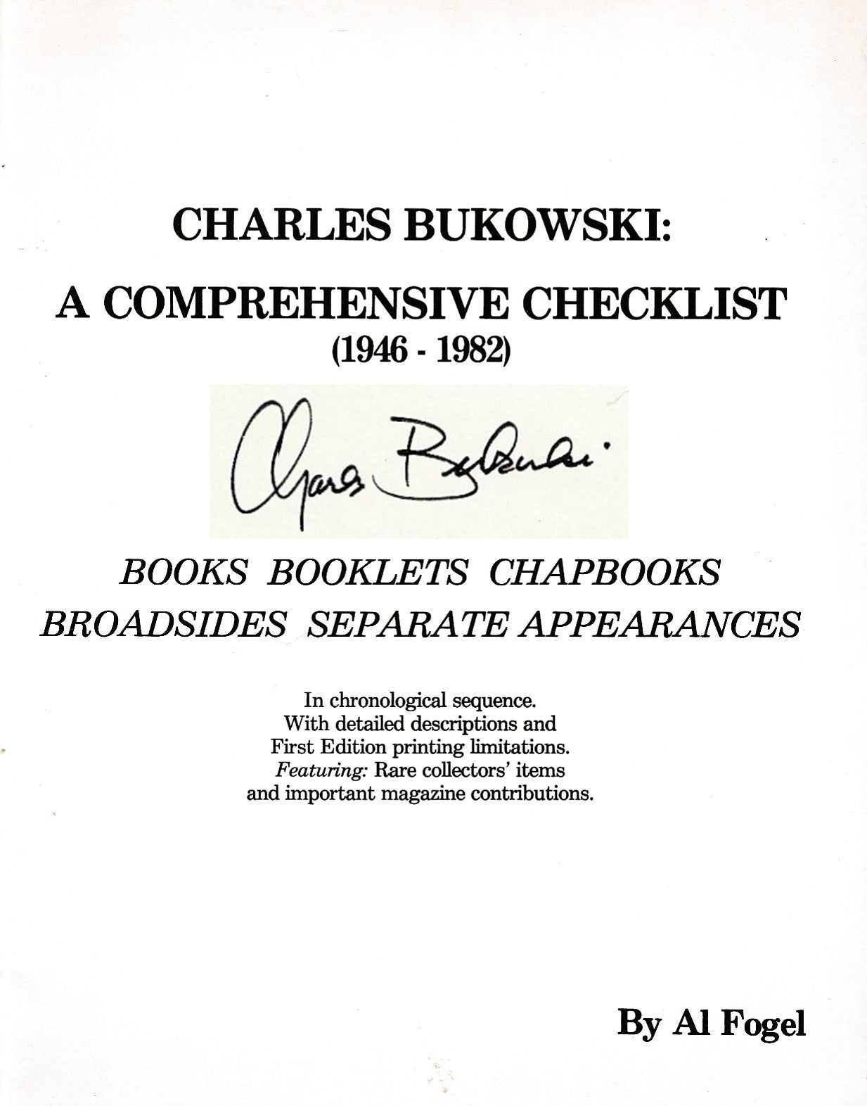 Charles Bukowski: A Comprehensive Checklist (#79/200) – Signed by Charles Bukowski