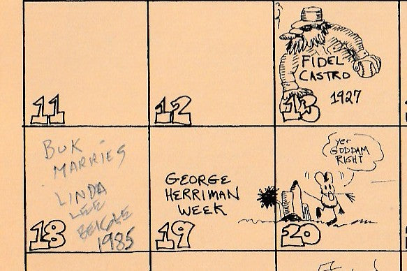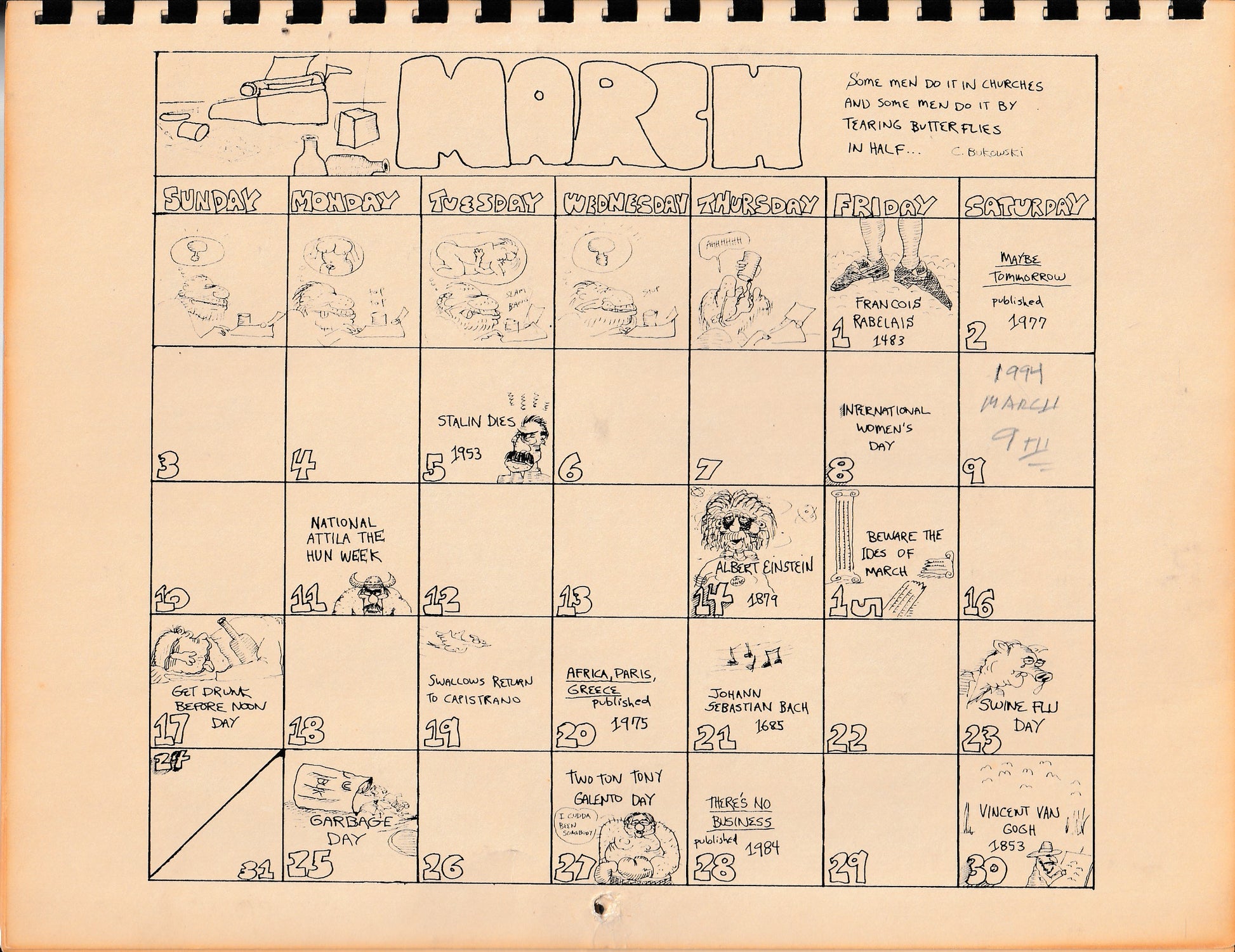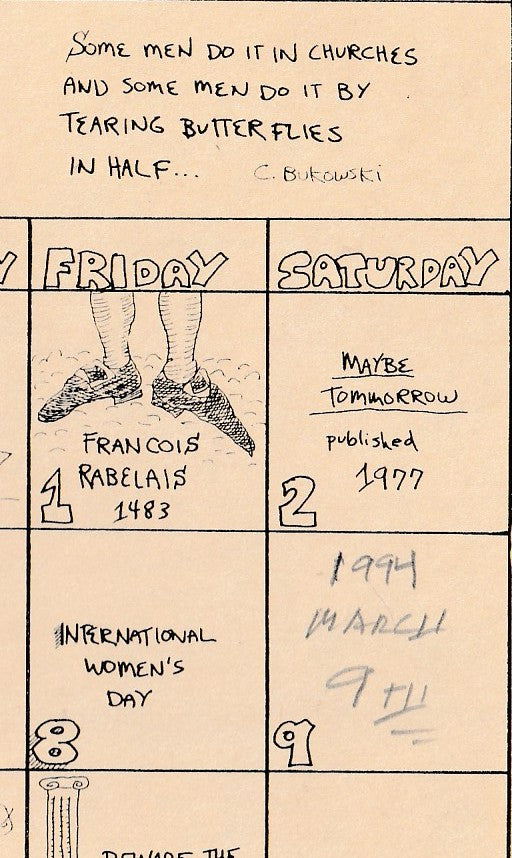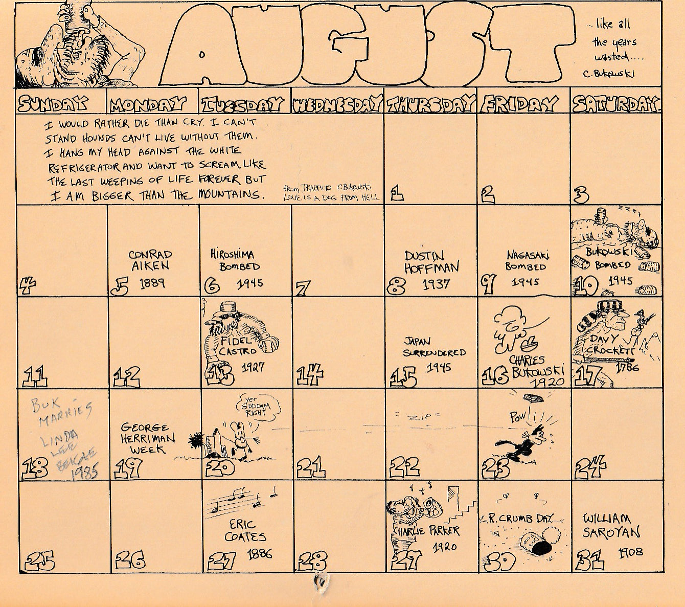 Charles Bukowski Calendar – Signed and Hung at Red Stodolsky’s Baroque Book Store